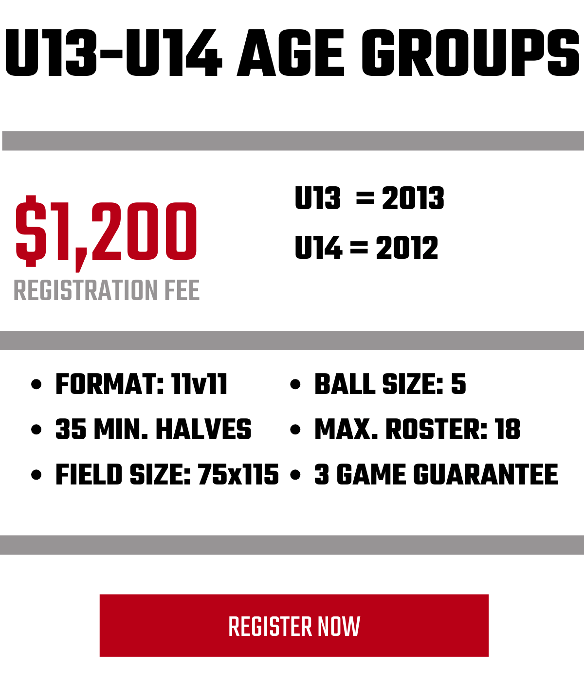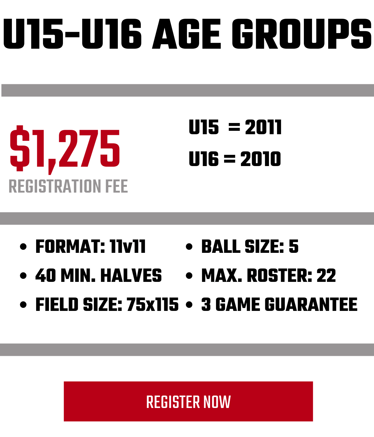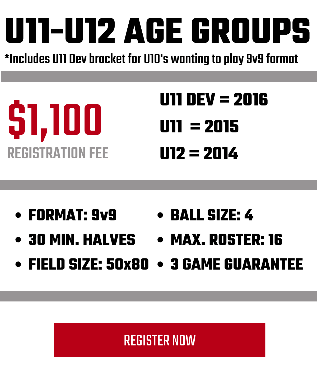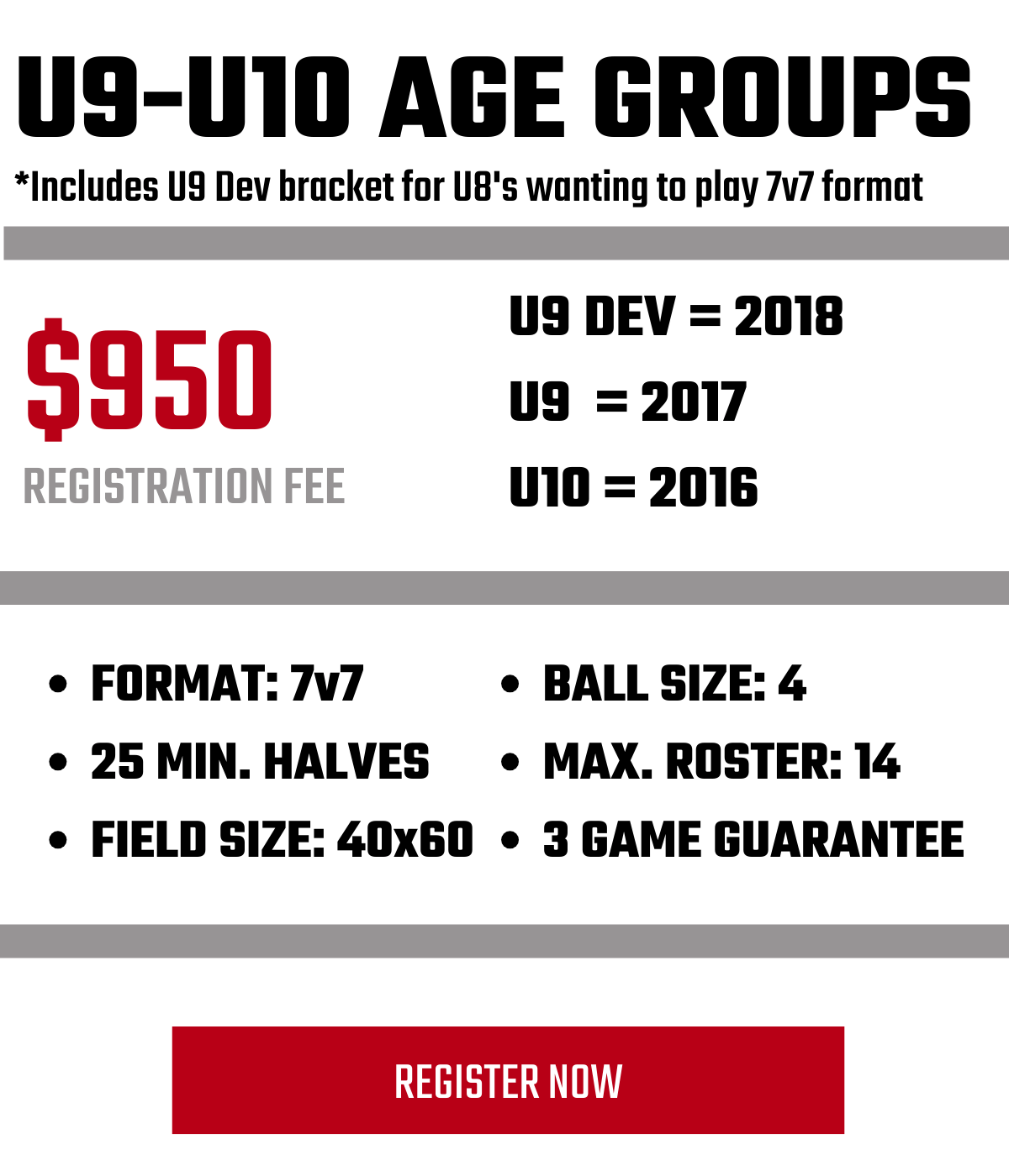 - Divisions: Academy U9-U10 | Select U11-U19