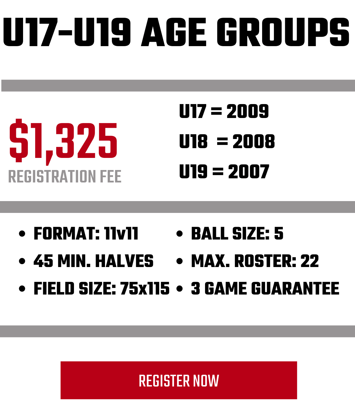 - Age Groups: Boys U9-U19 | Girls U9-U19